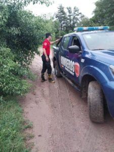 Sale el móvil 1131, a cargo del Subjefe de Agrupacion el Subcomisario (TB) Diego Cuatrin y el móvil 9423 a cargo de la subinspector (TB) Vergara Alexis. Una vez constituidos en los respectivos lugares, personal concurrente, trabajo de forma conjunta con personal de la Municipalidad Vera, realizando evacuacion de familias anegadas, por las condiciones climaticas (fuertes lluvias), desde distintos puntos de la ciudad, hasta el Centro de Evacuacion Club Gimnacia.