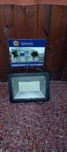 En fecha 06/02/2024, Personal policial de la Comisaria 2da de Calchaquí a raíz de la denuncia radicada por un hombre, mayor de edad, quien diera cuenta que autor/es ignorados, sustrajeron un reflector que se utilizara en un predio (cancha de futbol sito en barrio aborigen). De averiguaciones practicadas por funcionarios policiales establecen que no sería ajeno al hecho un joven, menor de edad, domiciliado en ese medio a quien de requisa domiciliaria proceden al secuestro preventivo del elemento denunciado como sustraído. Interviene UFI Nº 4- Vera.-