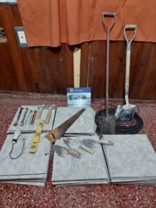 En fecha 18/04/2024 funcionarios policiales de la Comisaria 2da. de Calchaquí, tomo conocimiento mediante denuncia radicada por la propietaria de una obra en construcción (zona urbana de ese medio) en la que autor/es ignorados sustrajeron 30 METROS DE CABLE DE PROLONGACIÓN (alargue), COLOR NEGRO, (03) CUCHARAS DE MEZCLA, (02) PALAS UNA DE PUNTA Y OTRA PALA ANCHA, (03) MARTILLOS DE DISTINTAS MEDIDAS, CON CABO DE MADERA DE COLOR MARRÓN CLARO, (03) CORTA FIERROS, (01) FRATACHO Y (01) UN SERRUCHO CABO DE MADERA, siendo estas del constructor a cargo de obra, y (01) SACHET DE 5 KG DE HIDRÓFUGO Y (17) CAJAS DE CERÁMICO TIPO MARMOL DE 12 UNIDADES CADA UNA, DE UNA MEDIDA DE 34 X 34 CM MARCA CAÑUELAS; de diligencias investigativas efectuadas por personal actuante, establecen que no sería ajeno al ilícito un masculino, mayor de edad, con domicilio en la ciudad de Santa Fe y dos menores de edad, domiciliados en Calchaquí; procediéndose al secuestro preventivo de la totalidad de los elementos denunciados como sustraídos. Aprehendido el causante mayor de edad (disposición del fiscal en turno) en cuanto a los menores demorados en sede policial dándose inmediato conocimiento a la Jueza de Menores de la ciudad de Reconquista quien dispuso diligencias a seguir.