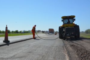 En otros tramos ubicados entre Castellanos y Rufino, actualmente se procede con el fresado de cinco centímetros de espesor con recambio de base para colocar una nueva carpeta de rodamiento construida con concreto asfáltico en caliente. De manera complementaria, se realiza el recalce y consolidación de banquinas. Los trabajos en marcha producen la reducción del carril intervenido, con paso alternado coordinado por banderilleros.