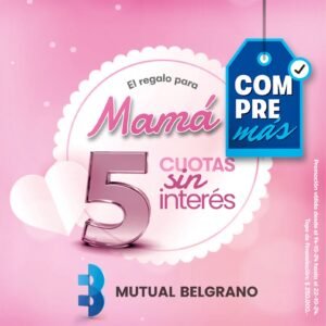 Desde este lunes 14 entra en vigencia la Promoción Día de la Madre de Mutual Belgrano, la misma incluye 5 cuotas sin interés a través del Sistema Compre Más y tendrá vigencia hasta el próximo martes 22 del corriente.
