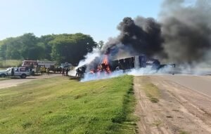Un trágico accidente se registró cerca de las 09.00 horas de este martes, sobre la Ruta Nacional N°34, a la altura del kilómetro 360, en jurisdicción de La Rubia. En el lugar, por causas que aún se investigan, colisionaron dos camiones, generando un incendio que consumió ambas cabinas y dejó como saldo dos víctimas fatales.