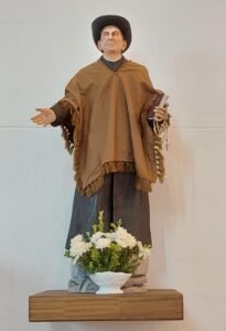 La imagen fue tarea del artesano Tomás Franzoy, en algarrobo y del mismo tronco del que fue tallado el Cristo que preside la Iglesia desde hace casi dos años y el artista plástico verense Leonel Alcaraz fue el encargado de pintarlo