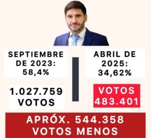 La masa, saltaba feliz festejando que sacaron la mitad de votos de la elección de gobernador del 2023, 500 mil menos… ¿Y festejan? El partido de la familia Milei, debutó con una derrota resonante haciendo números finos. La Libertad Avanza (LLA) salió tercero, si no computamos votos en blanco y nulos y demás yerbas. ¡Un papelón!