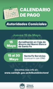La Secretaría Electoral de la Provincia de Santa Fe informa que quienes se hayan desempeñado como Autoridad Comicial durante las Elecciones Generales de Convencionales Reformadores y PASO municipales y comunales del pasado 13 de abril percibirán la retribución económica a partir de este jueves 15 de mayo.