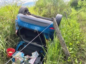 Este domingo 25 de enero, se produjo el tercer vuelco de un vehículo en el camino al complejo turístico. El siniestro vial ocurrió en el km 05 del trayecto ripiado a la laguna.